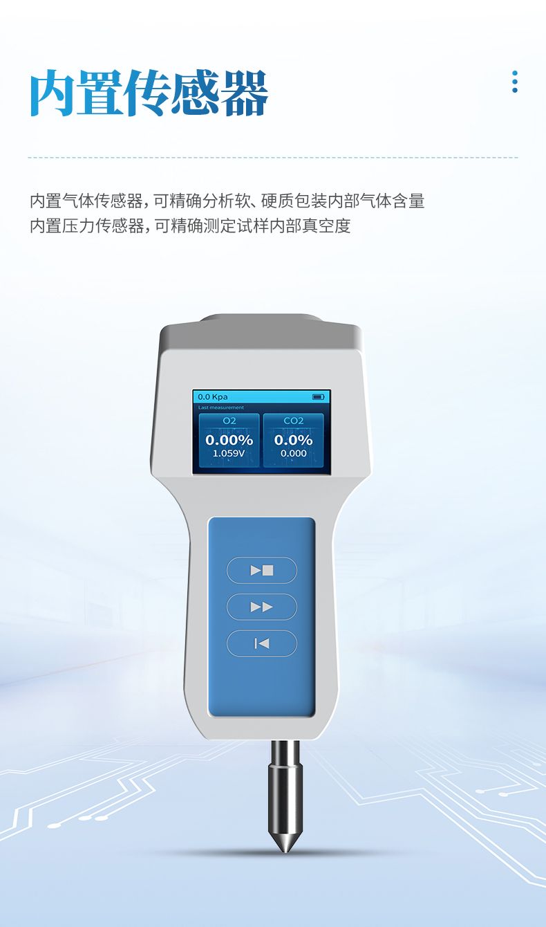 3.内置气体传感器,可精确分析软、硬质包装内部气体含量;
