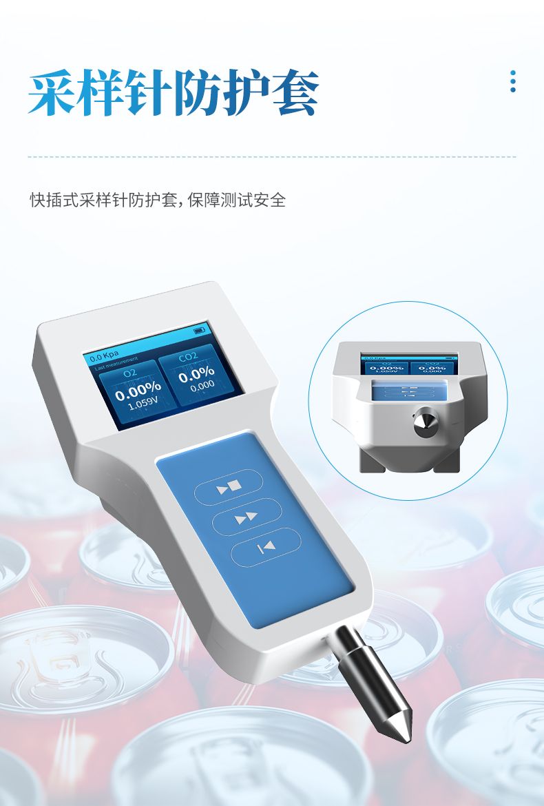 2.包装容器:适用于罐装咖啡、罐装奶粉、罐装食品、奶酪、罐头、利乐包装、饮料等包装容器内气体中的O2含量的测试;