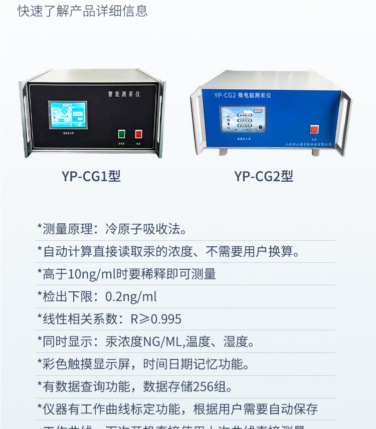 2.自动计算直接读取汞的浓度、不需要用户换算。