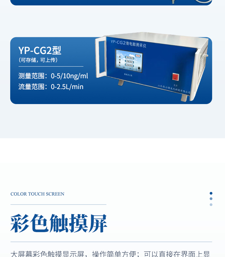 1.仪器采用紫外传感器、大屏幕彩色触摸显示屏;