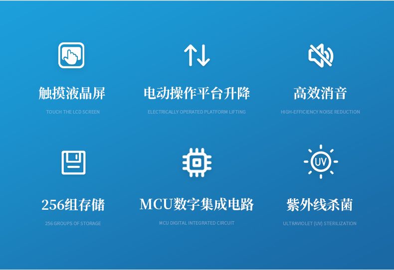 7.设备配置电动操作平台升降、 LED 照明系统、紫外杀菌功能;