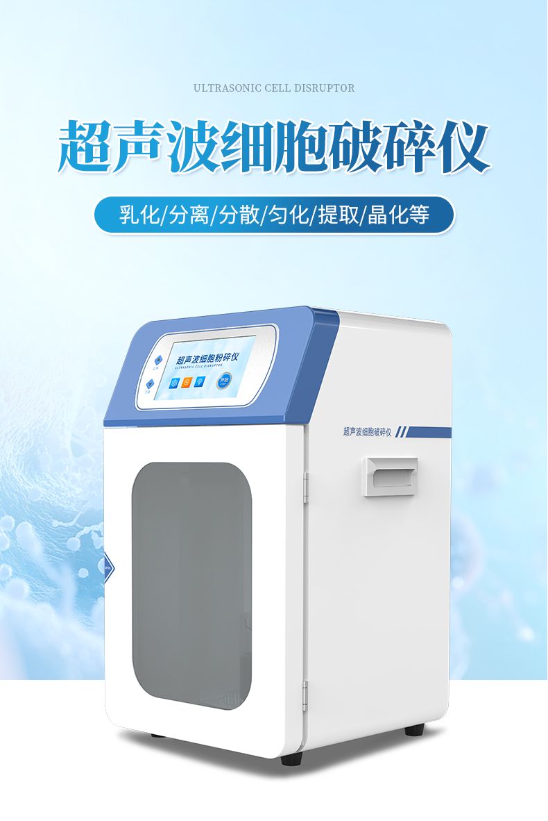 超声波细胞破碎仪是一种利用强超声在液体中产生空化效应,对物质进行超声处理的多功能、多用途的仪器,能用于动植物组织、细胞、细菌、芽胞菌种的破碎,同时可用来乳化、分离、分散、匀化、提取、脱气、清洗及加速化学反应等等。