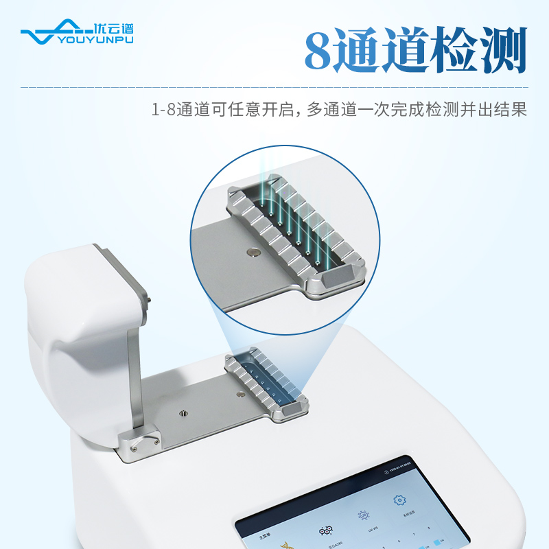 多通道检测:1-8通道可任意开启,多通道一次完成检测并出结果;