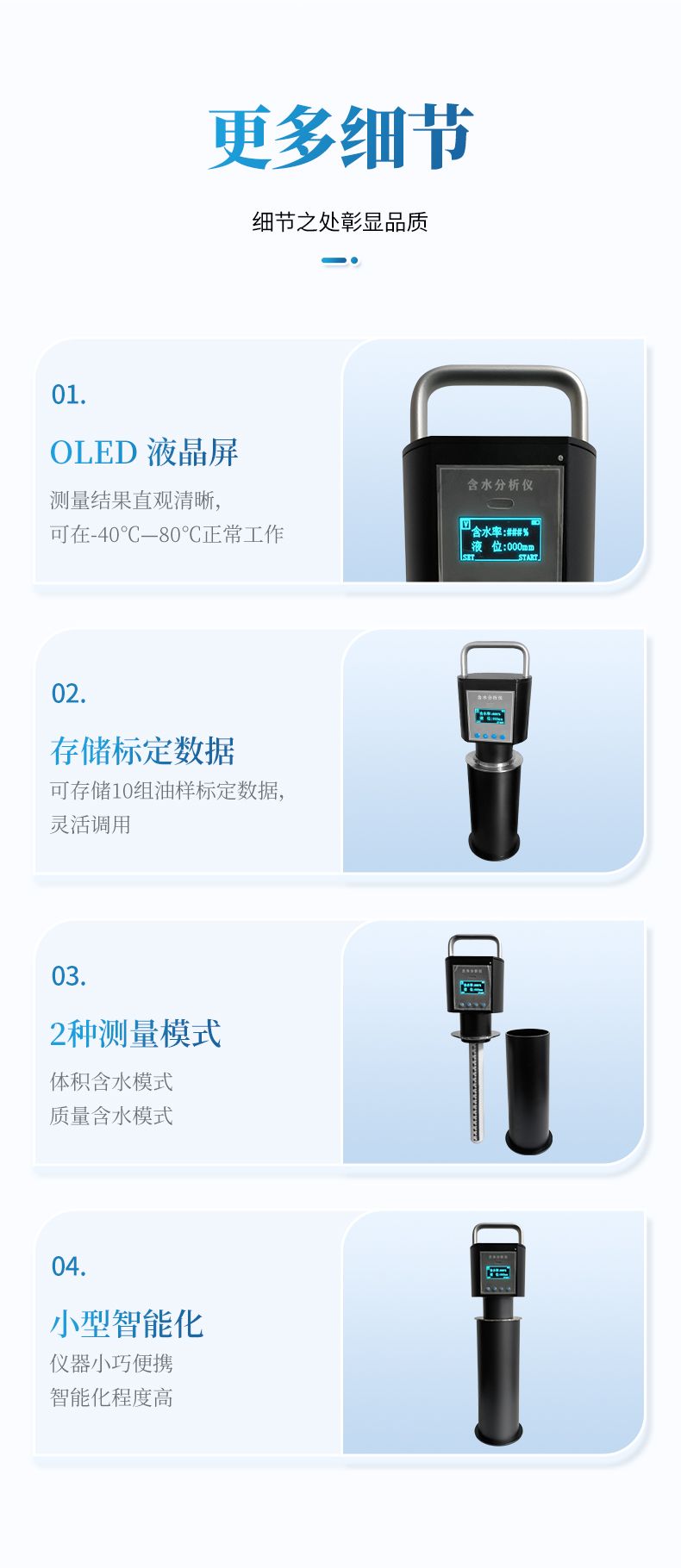 存储标定数据: 可存储 10 个油样标定数据,灵活调用