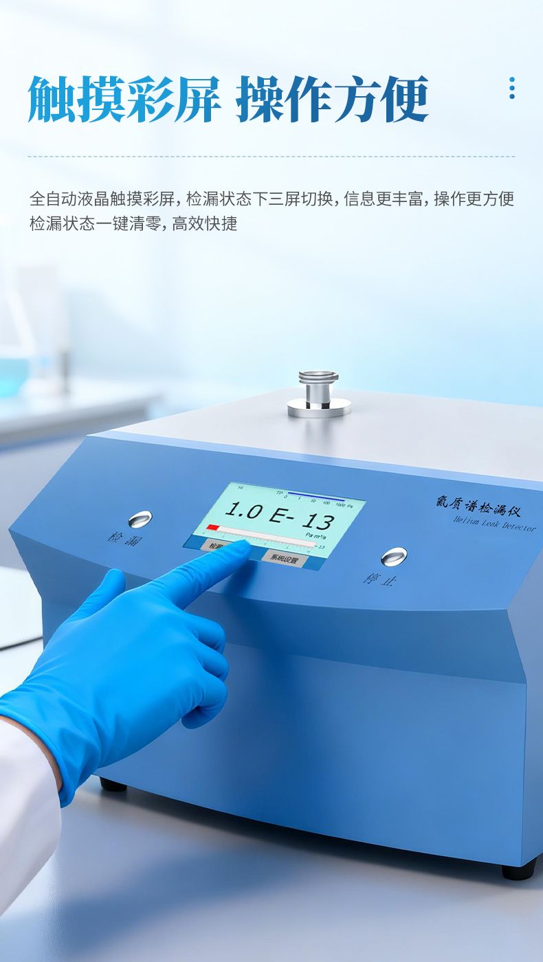 氦质谱检漏仪是采用质谱学原理、以氦气为示漏气体的高精度无损检漏设备,凭借氦气大气含量低、质荷比特征鲜明的优势,实现超高灵敏度检漏,可精准定位并定量漏点。设备支持真空喷氦、吸枪扫描、背压累积等多种检漏模式,适配真空 / 带压容器、密封组件、精密器件等不同检测需求,广泛应用于航天航空、半导体、汽车、电子医疗等领域,是高端制造与精密工业中密封检测的核心设备。