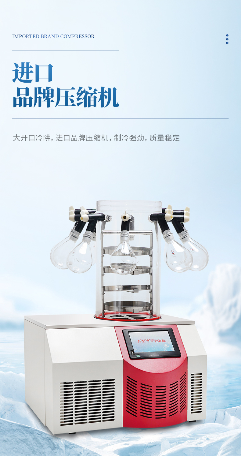 冷冻干燥机是一种利用真空冷冻干燥技术进行物质干燥的设备。其基本原理是将含水物质先冻结成固态,然后通过升华原理使水分从固态直接升华为气态,从而去除水分,保存物质。冻干机广泛应用于医药、生物制品、食品等领域,具有干燥效果好、保存时间长、复水性好等优点