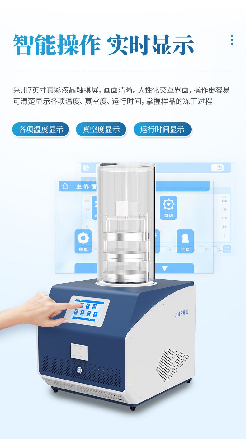 (2) 可清楚显示各项温度、真空度、运行时间,掌握样品的冻干过程。