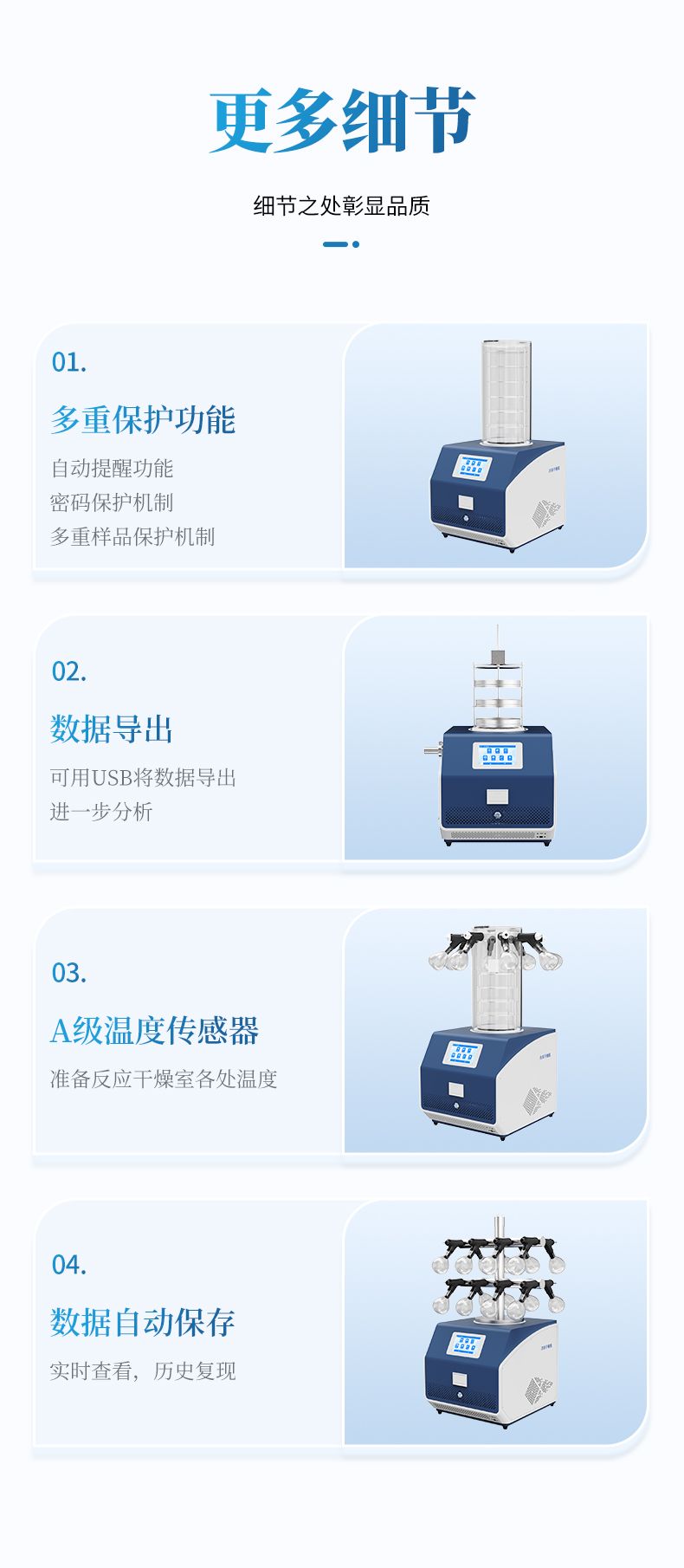 (6) 多重样品保护机制,如冷阱温度过高时,禁止真空泵启动,避免样品沸腾而被破坏。
