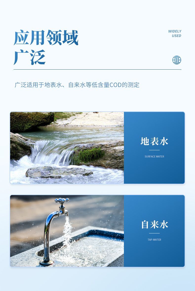 广泛应用于应急监测、自来水、生活饮用水、生活污水、医药化工、食品、纺织印染、电镀、造纸、石油冶金、河流治理、科研单位、院校等领域。