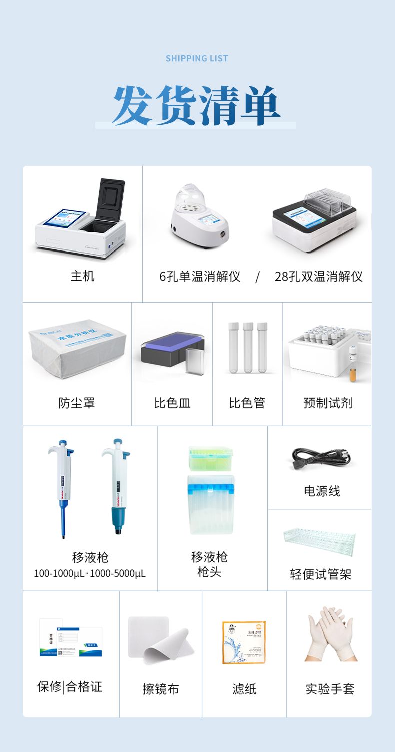 比色方式:比色管(16mm消解比色一体管)、比色皿(10mm、30mm、50mm);