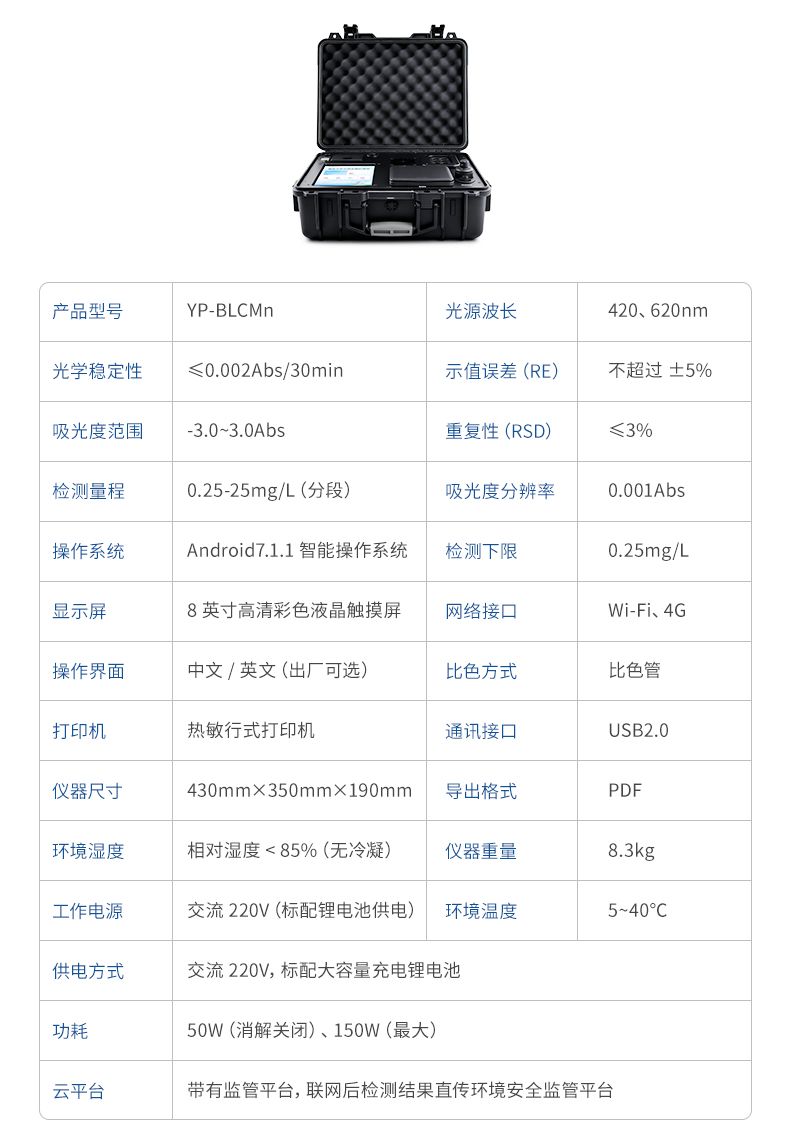 本仪器采用锰法测定水中的COD指标,又称CODMn或高锰酸盐指数,兼具智能数据分析功能,图表、列表显示数据,分析一目了然;高清晰度彩色液晶触摸显示屏,Android智能操作系统,中文显示界面,中英文键盘,人性化操作,使用更简单。