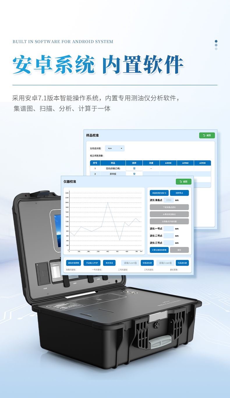 8)高自动化程序应用,用户可以通过安卓系统进行仪器所有功能的单独测试,波长自动扫描,自动修正等功能,让数据检测更加准确;