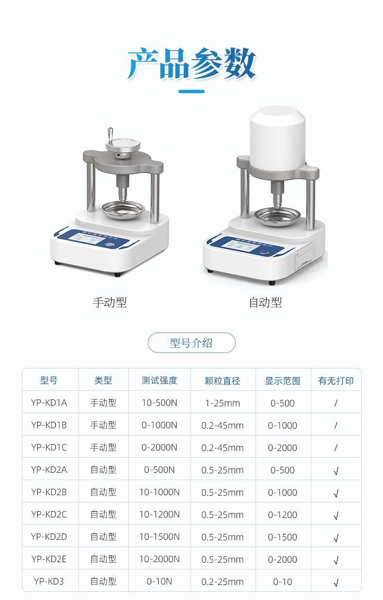 颗粒强度检测通过施加逐渐增大的轴向压力使单个颗粒破裂,记录其破碎前承受的最大压力值作为强度指标,其中脆性颗粒在压力超临界破坏阈值时碎裂,而不同颗粒类型的抗压强度则通过分析加载过程中的力学响应特性测定。