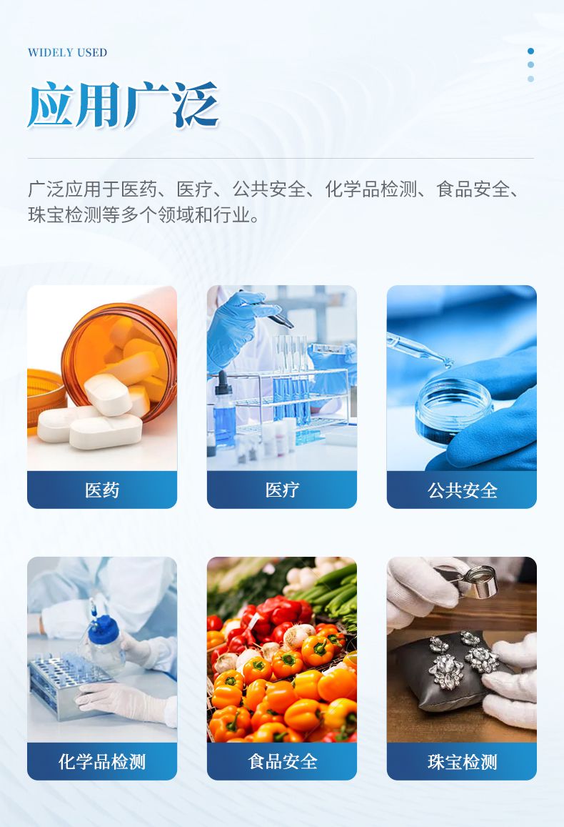 适用于现场快速检测,广泛应用于医药、公共安全、化学品检测、食品安全、珠宝检测及工业材料分析等多重领域和行业。