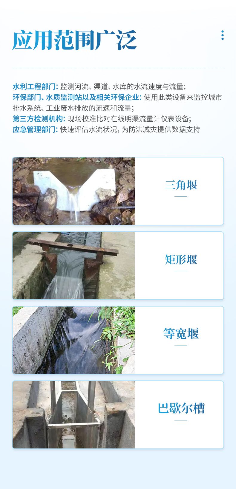 环保部门、水质监测站以及相关环保企业:使用此类设备来监控城市排水系统、工业废水排放的流速和流量;