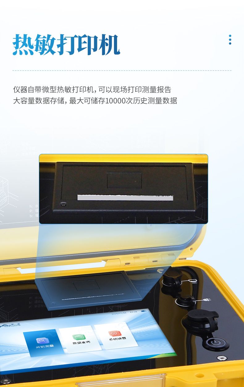 8、仪器自带微型热敏打印机,可以现场打印测量报告;