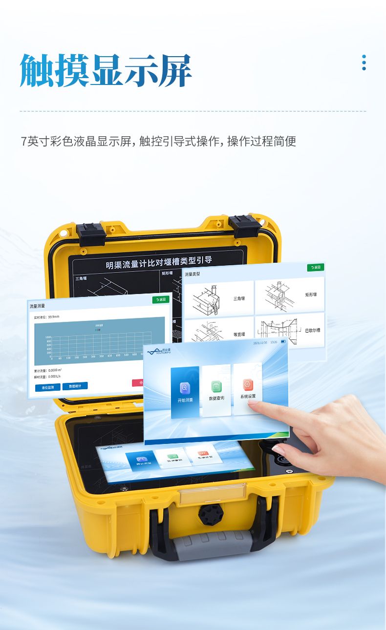 便携式明渠流量计是专为水文监测、江河流量监测、农业灌溉及市政给排水等行业设计的一种高精度测量仪表,支持10种堰槽类型的测量,采用超声波技术和特殊的微功耗设计方案,结合全数字信号处理技术,确保了测量的稳定性与可靠性。该设备具有广泛的测量范围和较高的测量精度,支持实时数据显示、数据记录、导出及打印等功能,操作简便且准确度高,非常适合于需要频繁移动进行测量的场合。同时,它依据JJG711-1990检定规程,并参照HJ353-2019、HJ354-2019、HJ355-2019以及HJ15-2019中对流量监测单元的相关要求进行比对验收,确保了其在水利工程、环境监测、农业灌溉等领域的适用性和准确性。