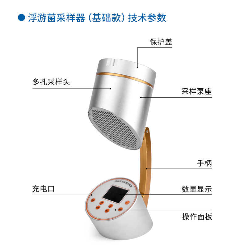 本仪器结构独特新颖,分上下两部分,上部分采集口和采样座及气泵,下部分控制器及电池。采样口和外壳采用优质航空铝制造,表面闭孔处理,便于使用前的灭菌消毒。本仪器功能强大,采样量大,收集效率高,性能稳定,操作简便,达到国际同类产品先进水平,是各制药厂、医院、生物制品、食品加工、公共场所的检测部门理想的浮游尘菌浓度采集器。