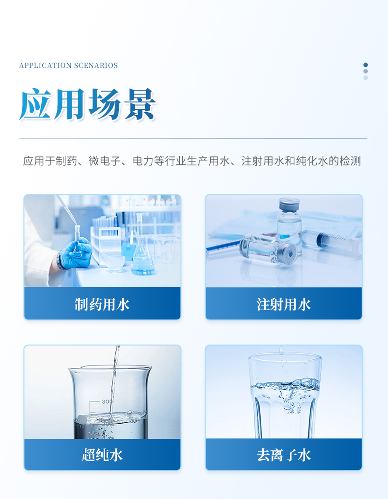 3、在线监测制药工业的制水系统、半导体工业的超纯水制备系统和晶片工艺过程、电厂去离子水制备过程等。