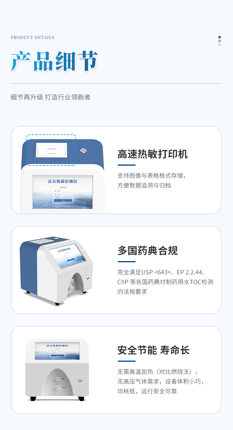 2、半导体行业、电厂、科研单位、制药行业、化工行业等超纯水TOC的检测;
