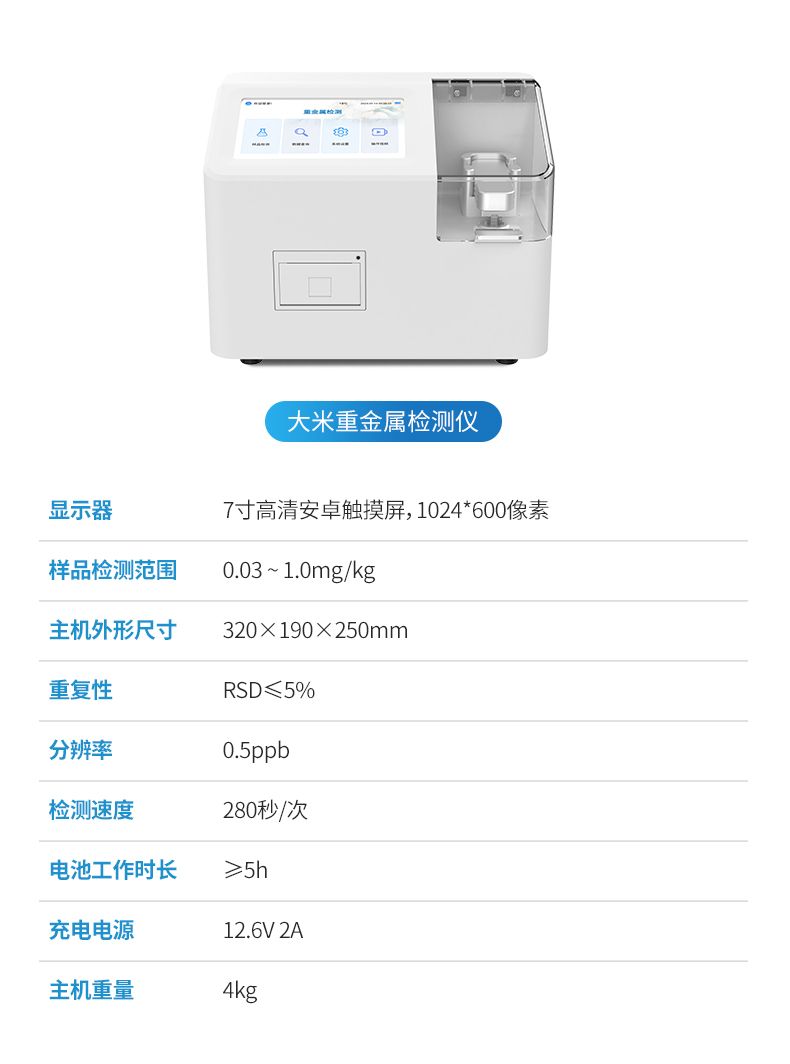 YP-TZ08重金属检测仪可广泛应用于大米、粮谷、果品、蔬菜、药材、水质、水产品中重金属铅、镉、六价铬、汞、砷、铁、镍、铝的快速检测,检测项目可根据客户的需求定制。