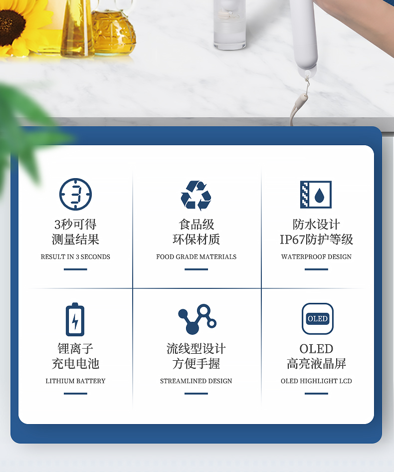 ■快速测量 3秒钟能得到测量结果,并有不同区间品质的闪烁提示。