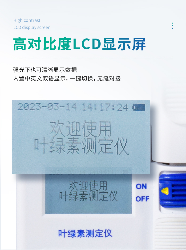 叶绿素测定仪根据叶绿素光谱吸收规律,采用两种不同的发光管照射叶片,通过测量透过叶片的光的强度计算出叶片内的叶绿素相对含量或者绿色程度,从而为合理、适当、及时施肥提供可靠的科学依据,广泛应用于农业、林业、植物等科学研究和生产指导。