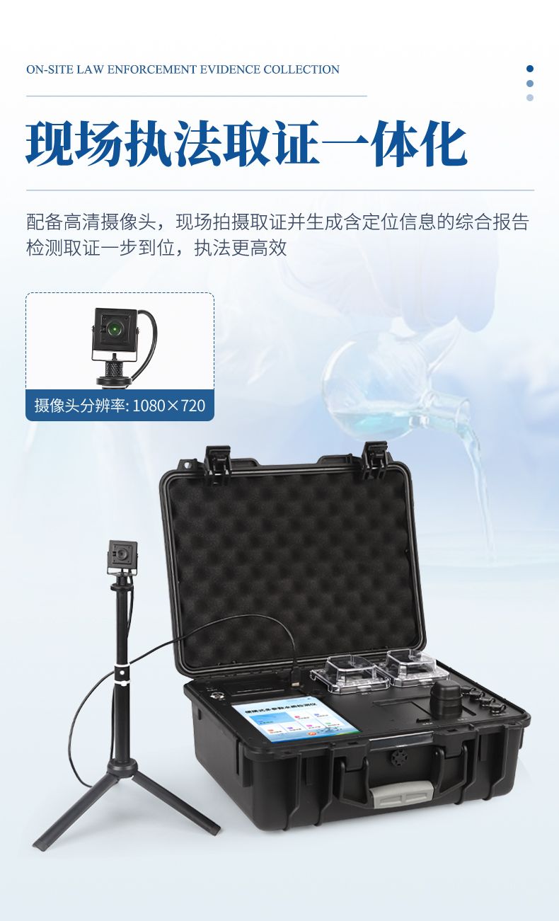 便携一体式多参数水质检测仪采用高强度PVC工程塑料手提箱设计,消解检测一体式设计,其中消解模块具备双温区功能,检测部分同时具备360°旋转比色试管检测和比色皿检测,还具有多个485传感器接口便于接入多项传感器快速检测使用,安卓智能操作系统,8英寸高清液晶触摸屏,光纤检测技术,进口光源,内置大容量锂电池,便携一体式多参数水质检测仪具有性能稳定、测量准确、测定范围广、功能强大、操作简单等特点。