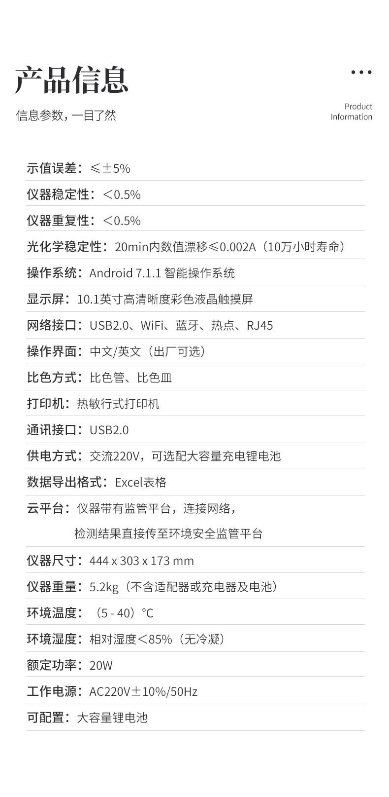 光化学稳定性:20min内数值漂移≤0.002A(10万小时寿命);