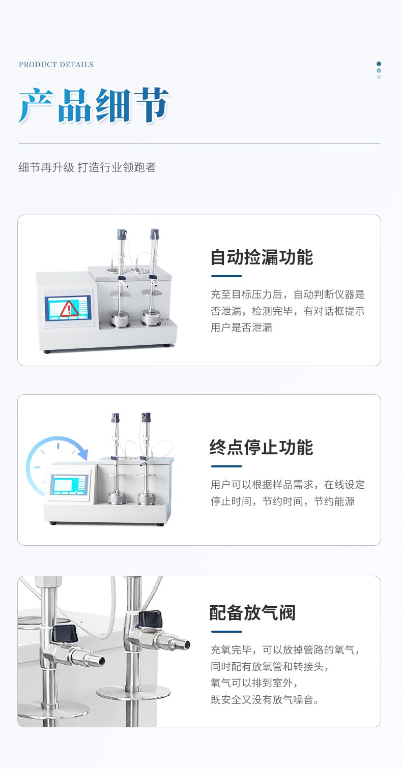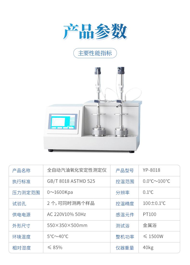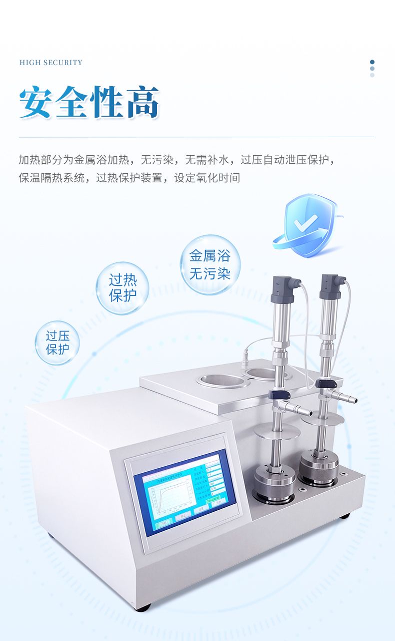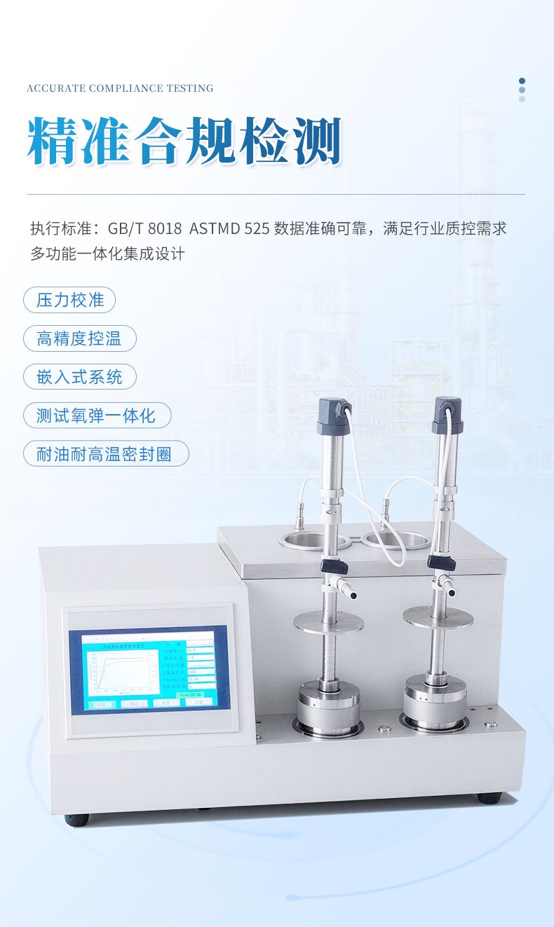 (5)仪器具有设定氧化时间功能,根据国家标准如果样品出现缓慢氧化,到达设定时间后,仪器自动计算出该时间下的最高到最低压力降,作为实验数据。