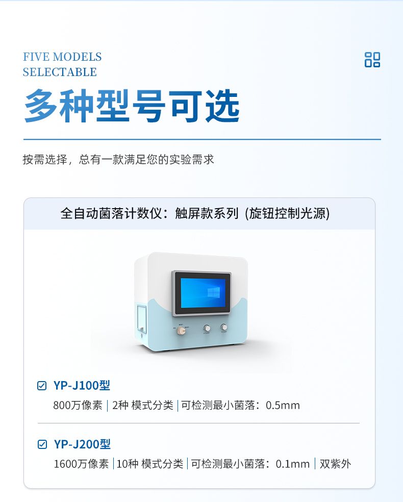 本产品是一款集图像采集、数据处理与统计于一体的自动菌落计数,广泛应用于食品、药品、化妆品、环境监测、医疗卫生、科研院校等领域的菌落计数。该仪器采用先进的数字图像处理技术,具备荧光菌识别和杀菌功能,可实现对培养皿中菌落的快速、准确、全自动计数,显著提升实验效率,降低人工误差。