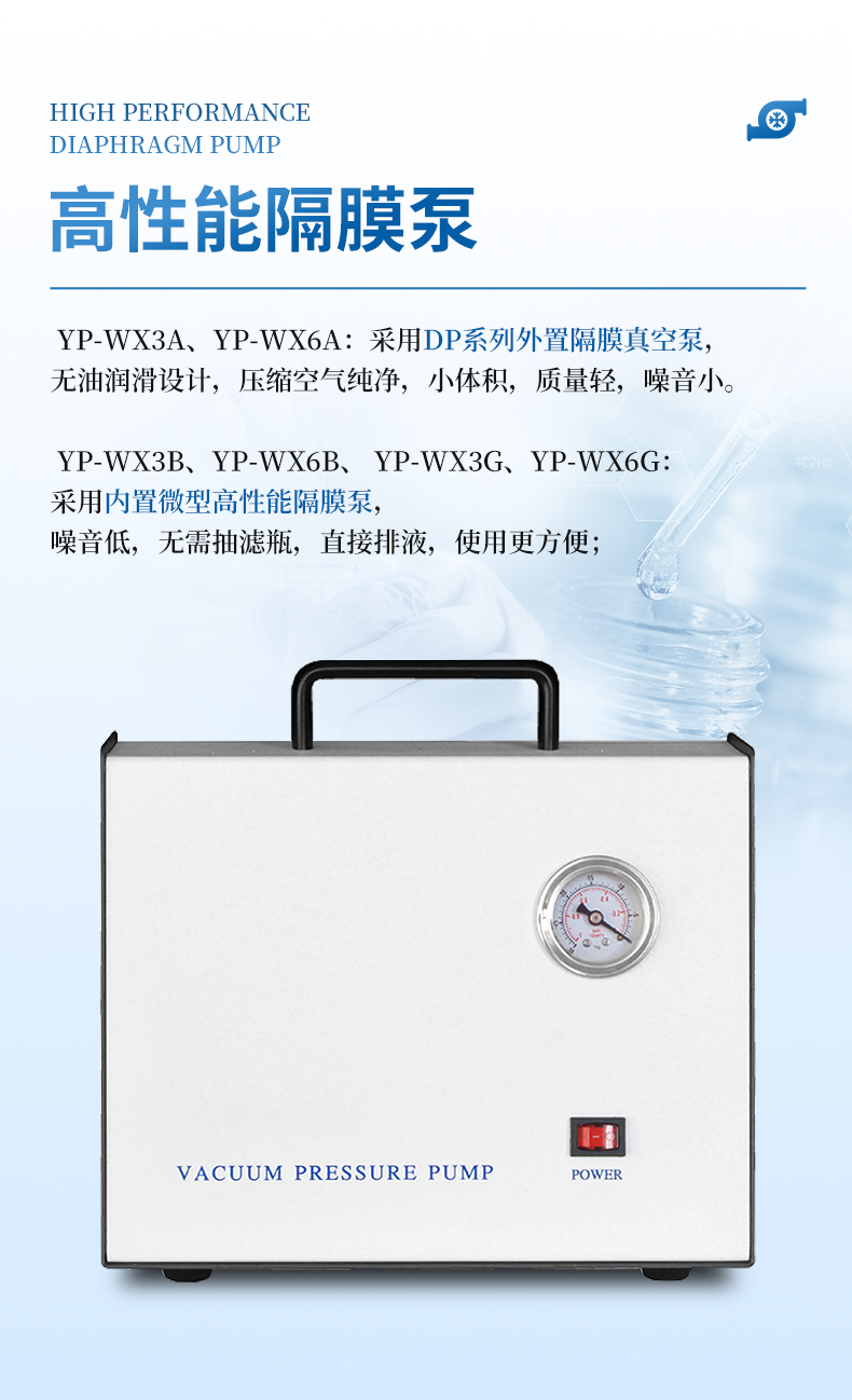 3.直接抽滤排液,无需抽滤瓶,安装使用方便;