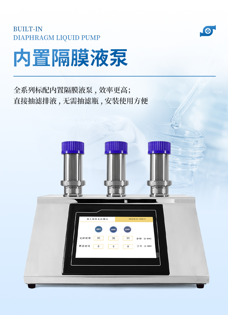 | 抽滤方式 | 内置隔膜液泵负压抽滤,无需抽气瓶 |