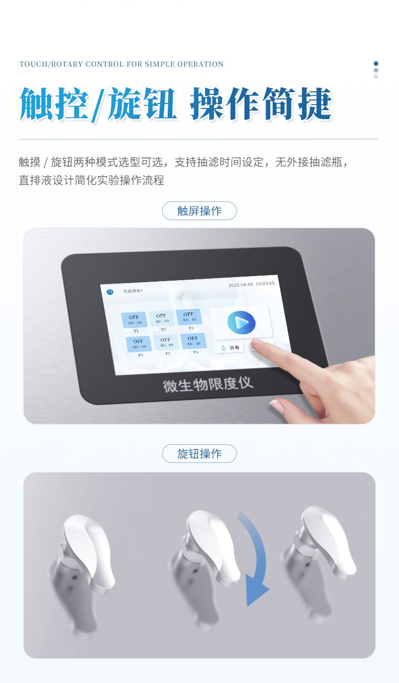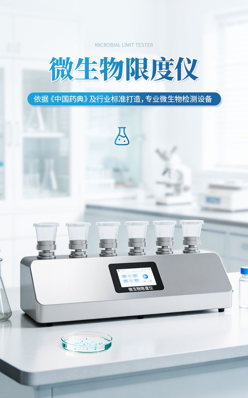 微生物限度仪是依据《中国药典》及相关行业标准设计制造的专用微生物检测设备。该设备通过负压抽滤方式将供试液中的微生物截留于滤膜上,经培养后形成可见菌落,并通过计数准确测定样品中的含菌量。适用于药品、食品、化妆品、化工等行业的微生物限度检查。