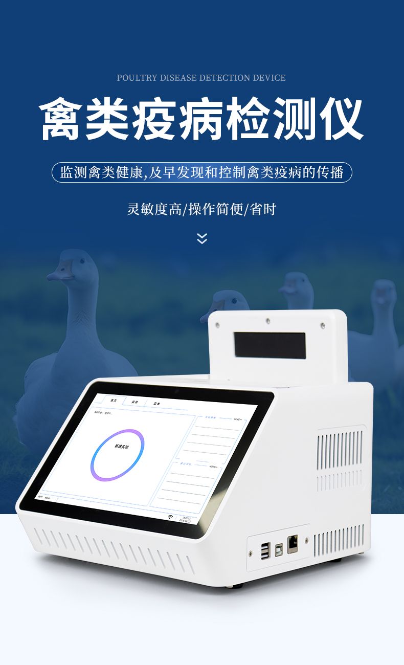 禽类疫病检测仪是用于检测禽类(鸡、鸭、鹅等)中鸡传染性法氏囊炎病毒(IBDV)、鸡新城疫病毒(NDV)、传染性支气管炎病毒(IBV)、禽白血病、禽流感病毒(AIV)、鸭瘟病病毒(DPV)、小鹅瘟等潜在病原体的设备。这些检测仪器主要用于监测禽类的健康状况,及早发现和控制禽类疫病的传播。