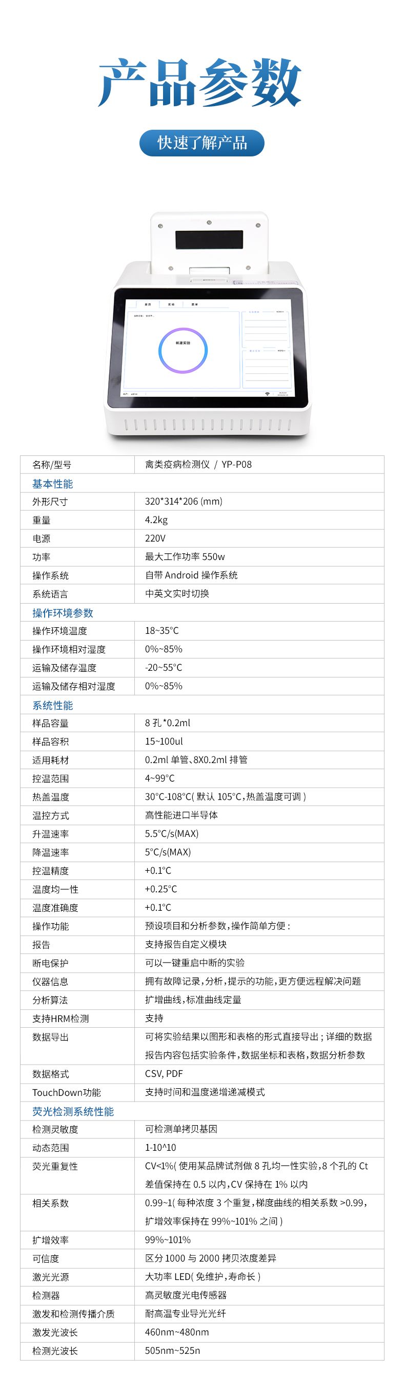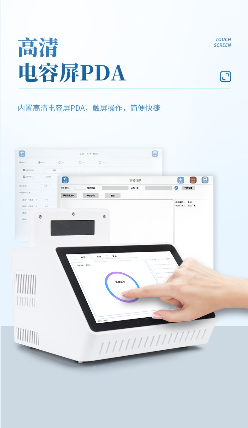 软件功能:荧光定量 PCR 系统软件;实时扩增反应曲线功能;特定标本实时反应曲线显示;数据分析功能;阴阳结果自动判定功能;图形化显示功能。