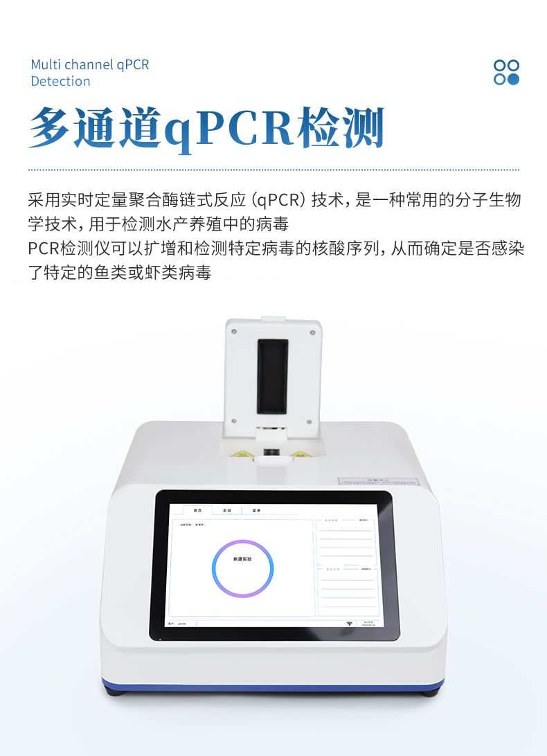 鱼虾病毒检测仪采用实时定量聚合酶链式反应(qPCR)技术,是一种常用的分子生物学技术,用于检测水产养殖中的病毒。PCR检测仪可以扩增和检测特定病毒的核酸序列,从而确定是否感染了特定的鱼类或虾类病毒。