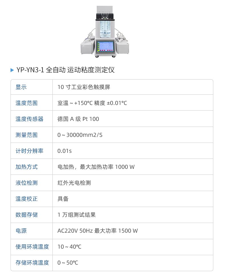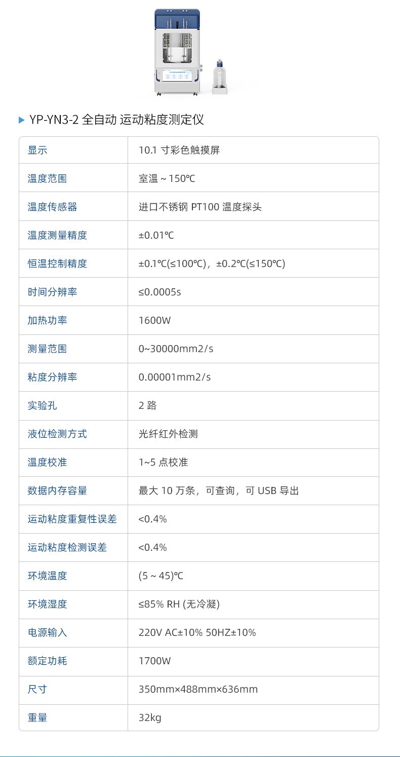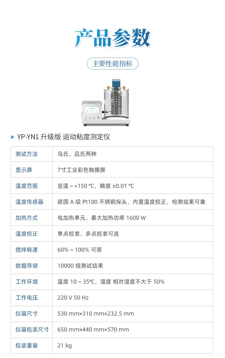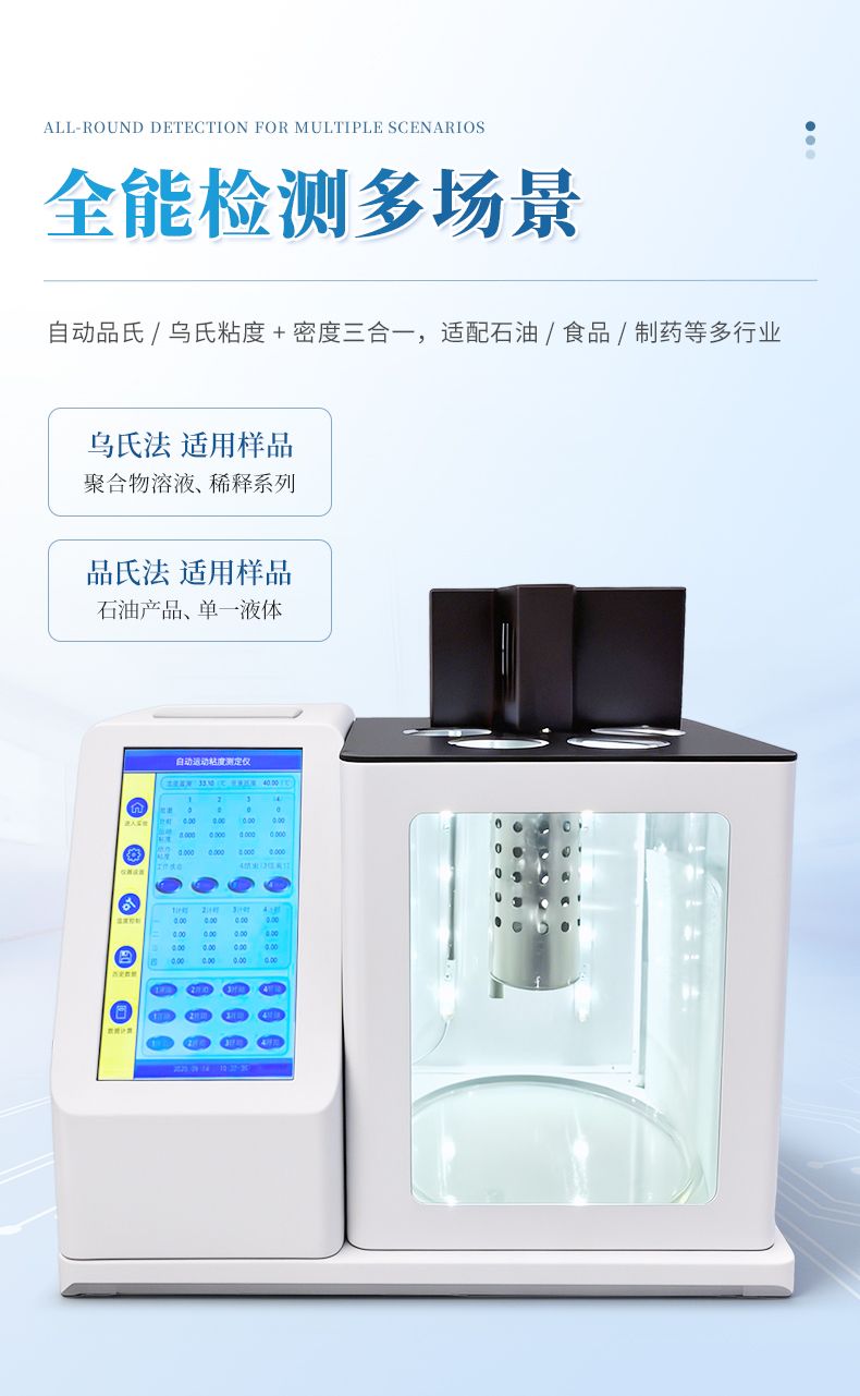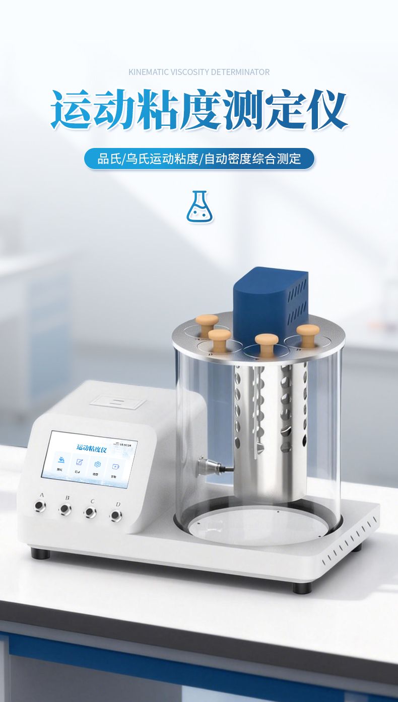 本产品石油产品运动粘度自动测定仪是依据国家标准《GB265-88石油产品运动粘度测定法》设计制造的专用测试仪器,适用于测定液体石油产品的运动粘度。本仪器具有计时试样运动时间,自动计算运动粘度的最终结果。本方法适用于测定液体石油产品(指牛顿液体)的运动粘度,其单位为m2/s,通常在实际中使用为mm2/s。动力粘度可由测得的运动粘度乘以液体的密度求得。本方法是在某一恒定的温度下,测定一定体积的液体在重力下流过一个标定好的玻璃毛细管粘度计(品氏、乌氏)的时间,粘度计的毛细管常数与流动时间的乘积,即为该温度下测定液体的运动粘度。该温度下运动粘度和同温度下液体的密度之积为该温度下的动力粘度。