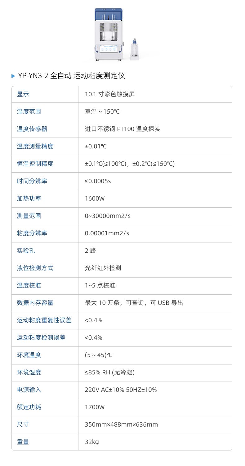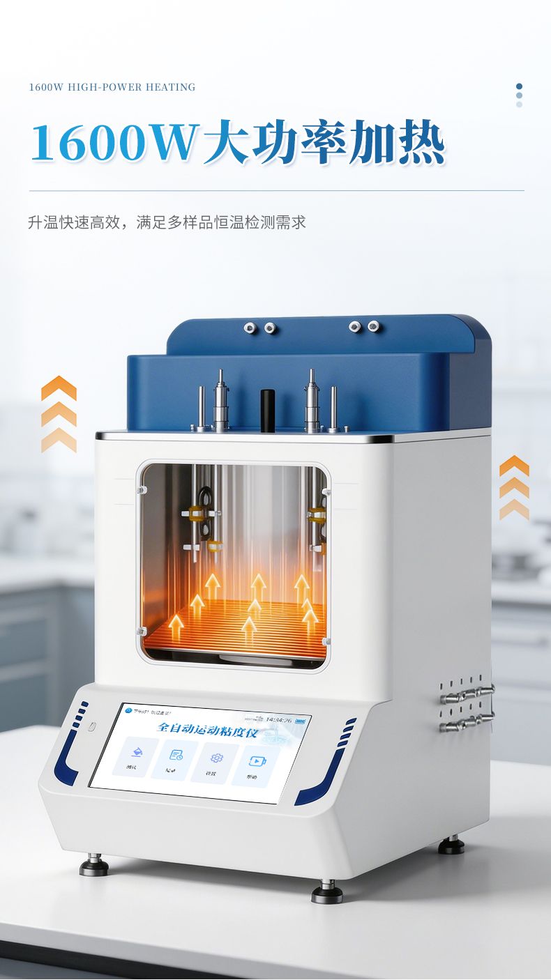 全自动运动粘度测定仪是按照GB/T265、ASTM D445的标准要求研制开发,用于测定液体、石油产品的运动粘度,结构设计精巧、美观、实用、操作舒适。一键快速恒温、油样上吸、粘度检测、粘度值计算、打印、粘度管清洗、烘干粘度管,不需要人工操作,仪器自动完成,一次可同时做2个样品的实验,提高工作效率;广泛应用于药典、石油、化工、科研、计量、商检、电力等部门。