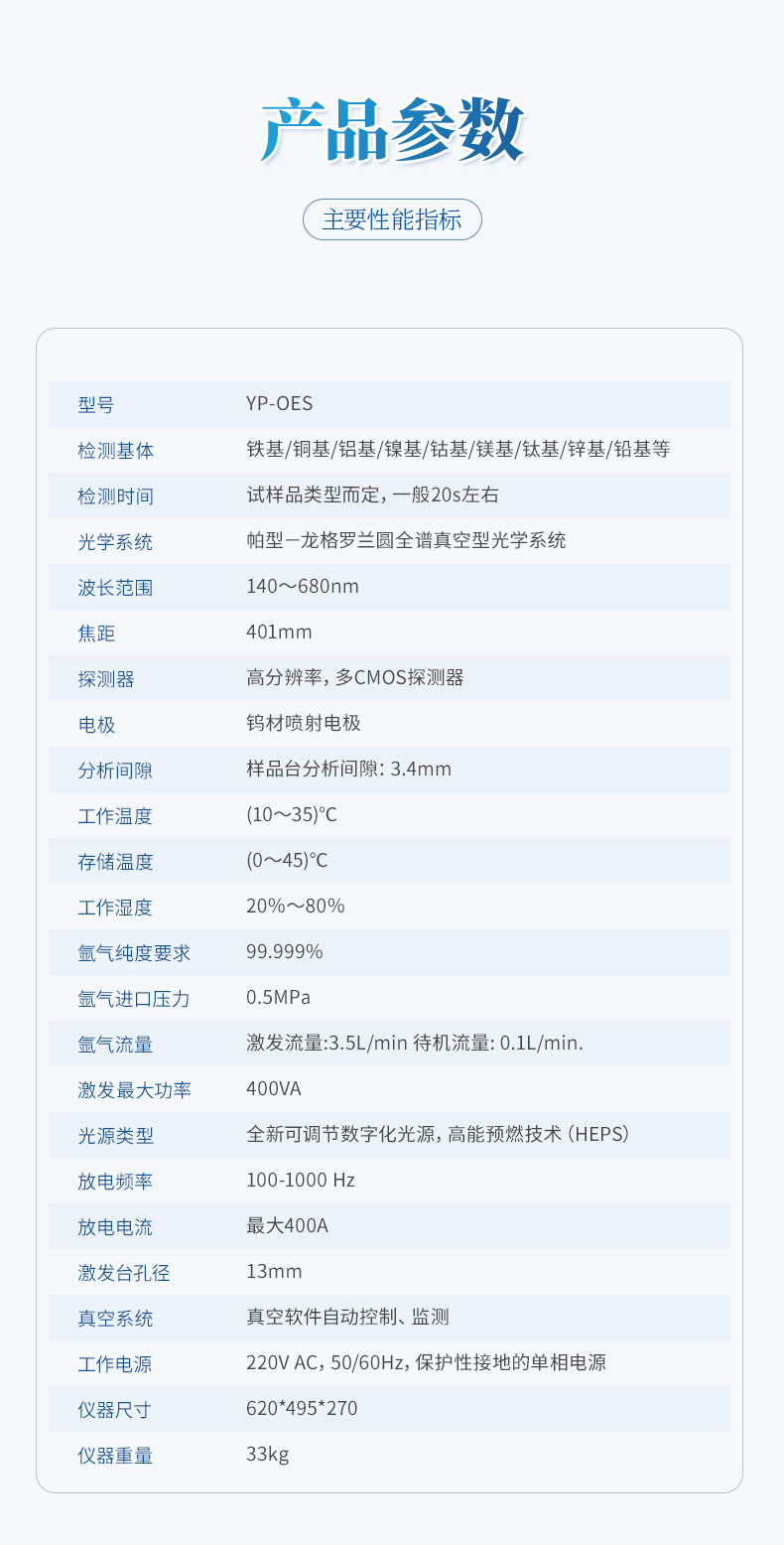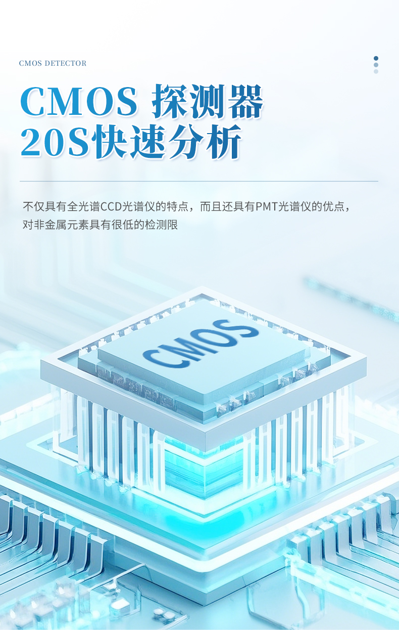 直读光谱使用日本Hamamatsu公司最先进的CMOS信号采集元件,每个CMOS可以分别设置火花的数量。它采用真空光室设计和全数字激发光源。该CMOS光谱仪不仅具有全光谱CCD光谱仪的特点,而且还具有PMT光谱仪的优点,对非金属元素具有很低的检测限。整机的设计合理。它还具有操作简便,测试精度高,长期稳定等优点。