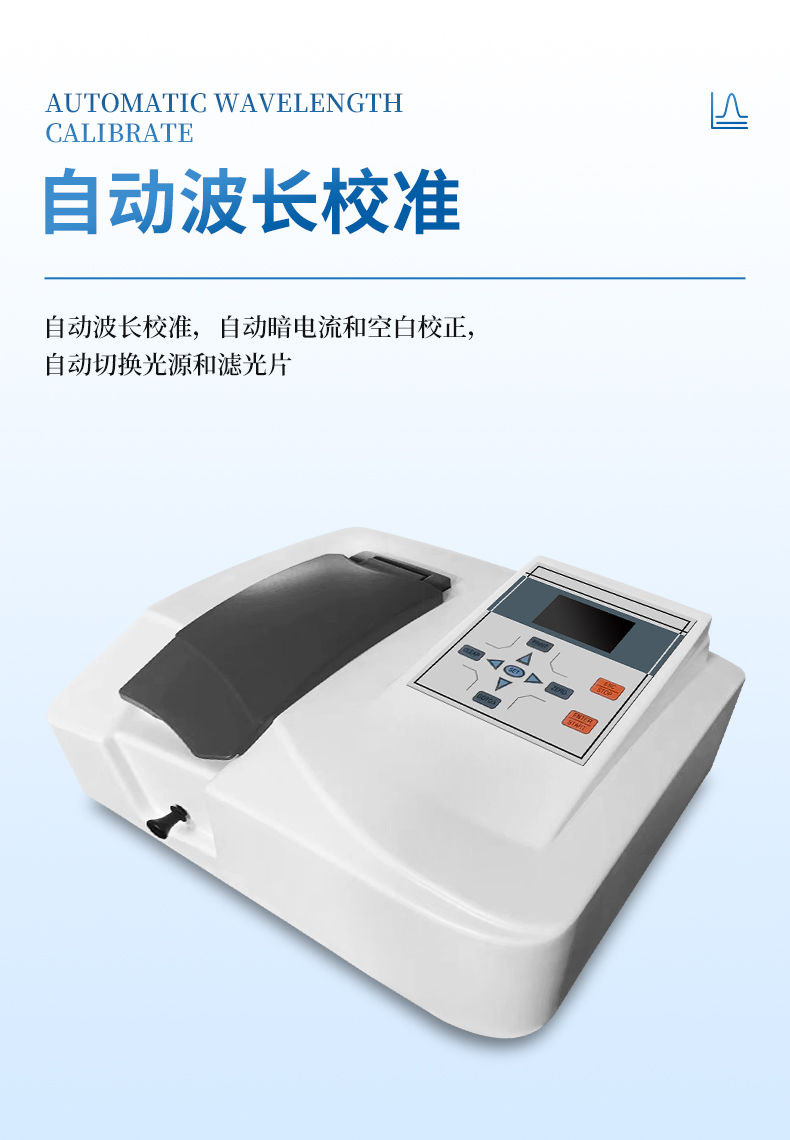 ◆ 自动波长校准,自动暗电流和空白校正,自动切换光源和滤光片
